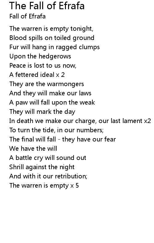 The Fall of Efrafa Lyrics