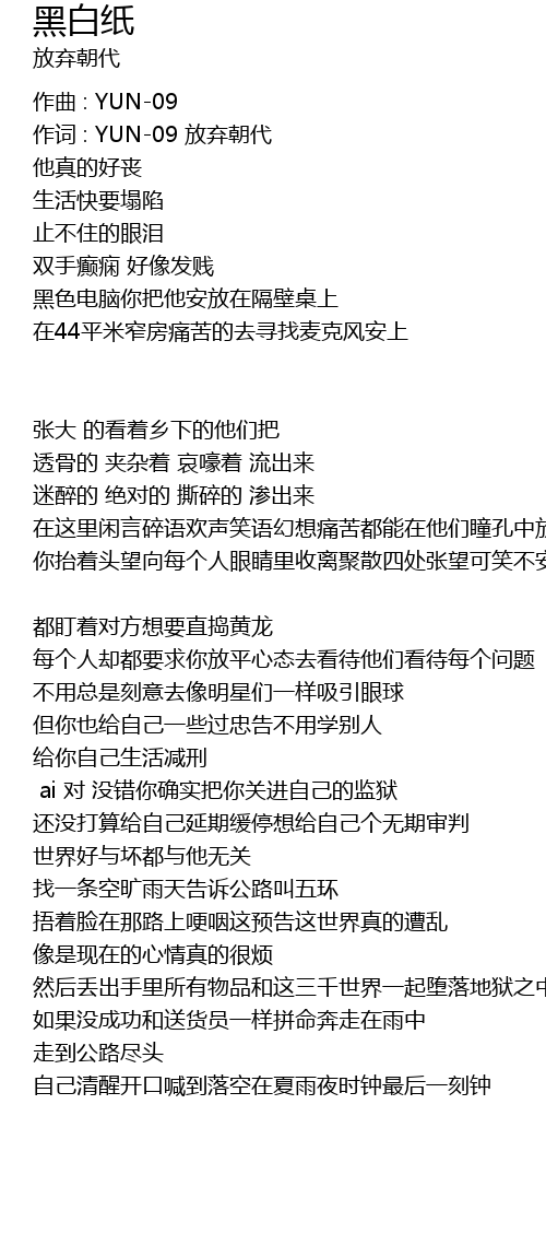 | 作词 : YUN-09 放弃朝代 | |