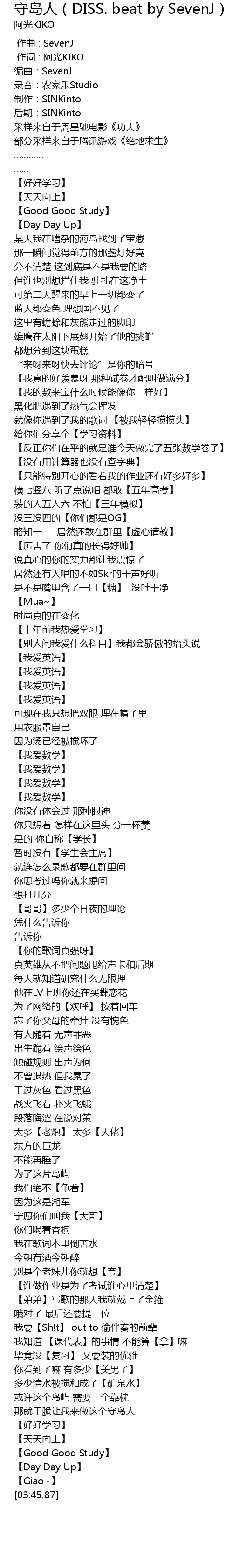 | [03:09.78] | 【弟弟】写歌的那天我就戴上了金箍 |