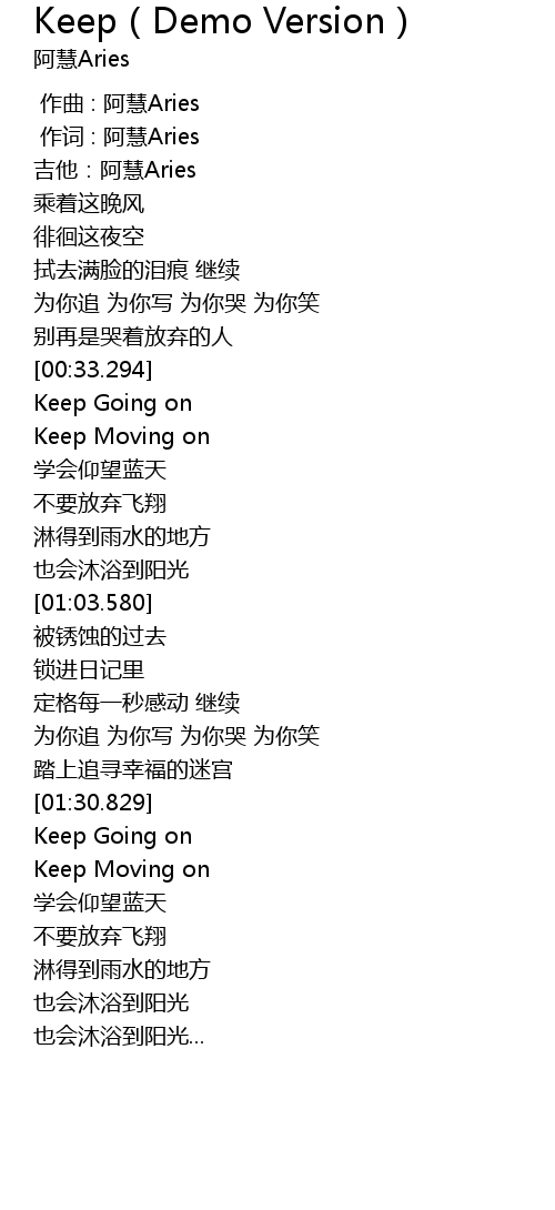| [00:18.429] | 拭去满脸的泪痕 继续 |