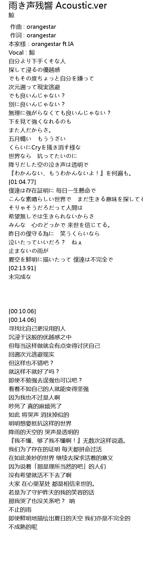 | [00:10.06] | ben jia yang: orangestar ft. IA |