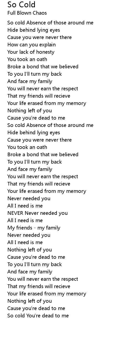 So cold You're dead to me |