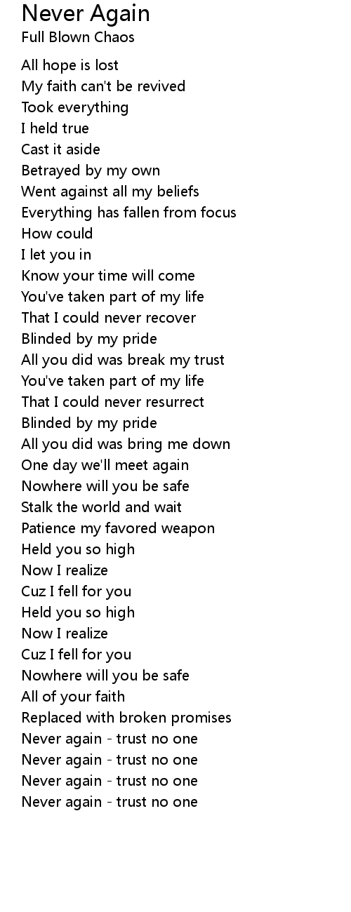 Never again - trust no one |