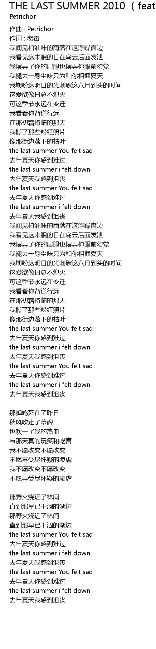 | qù nián xià tiān nǐ gǎn dào nán guò | |