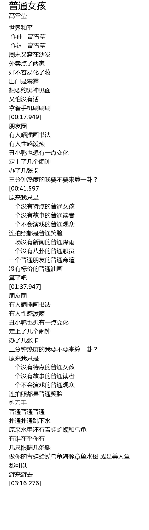 | [00:49.448] | 一个没有特点的普通女孩 |