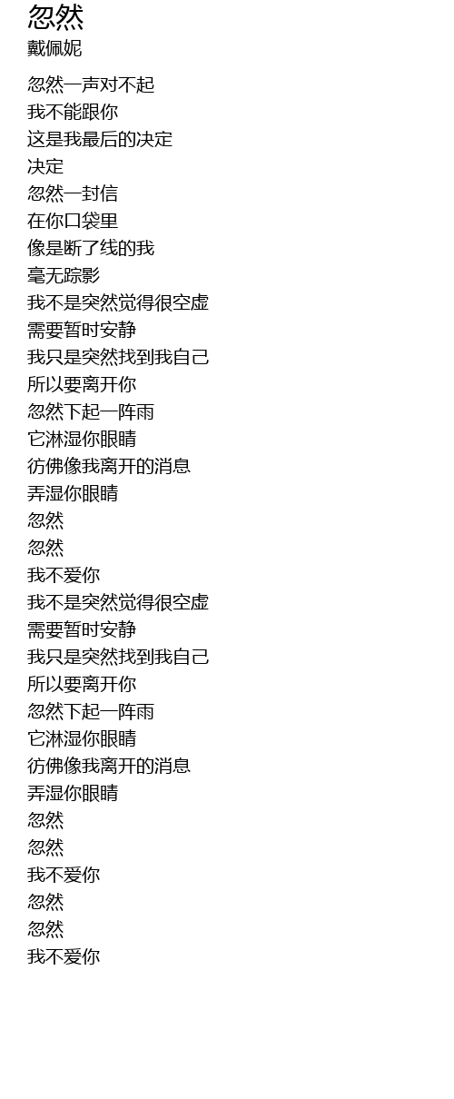 | [00:24.230] | hū rán yī shēng duì bù qǐ |