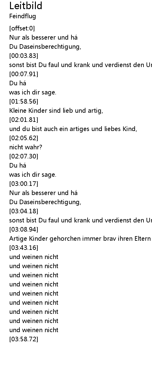 [03:05.10] sonst bist Du faul und krank und verdienst den Untergang.