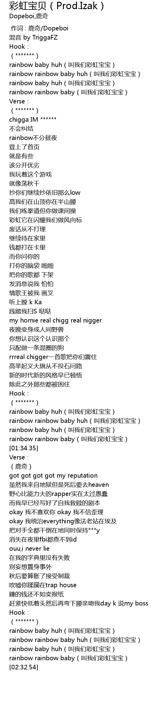 | [00:13.35] | rainbow rainbow baby huh(叫我们彩虹宝宝) |