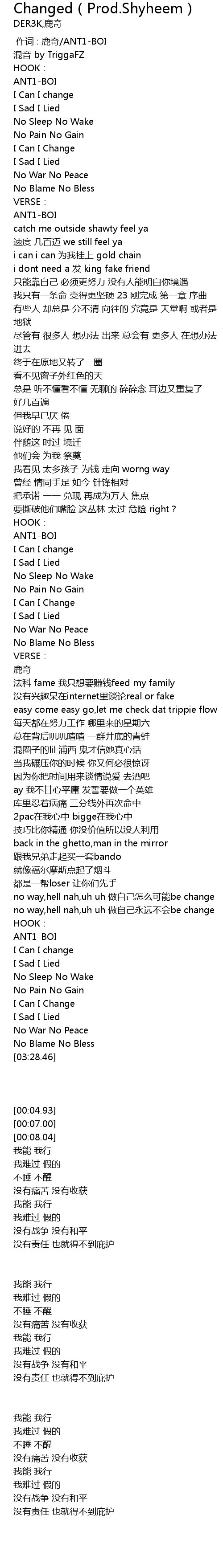 | [02:53.55] | no way, hell nah, uh uh zuò zì jǐ yǒng yuǎn bú huì be change |