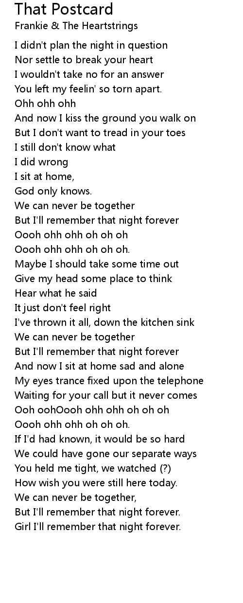 But I'll remember that night forever |