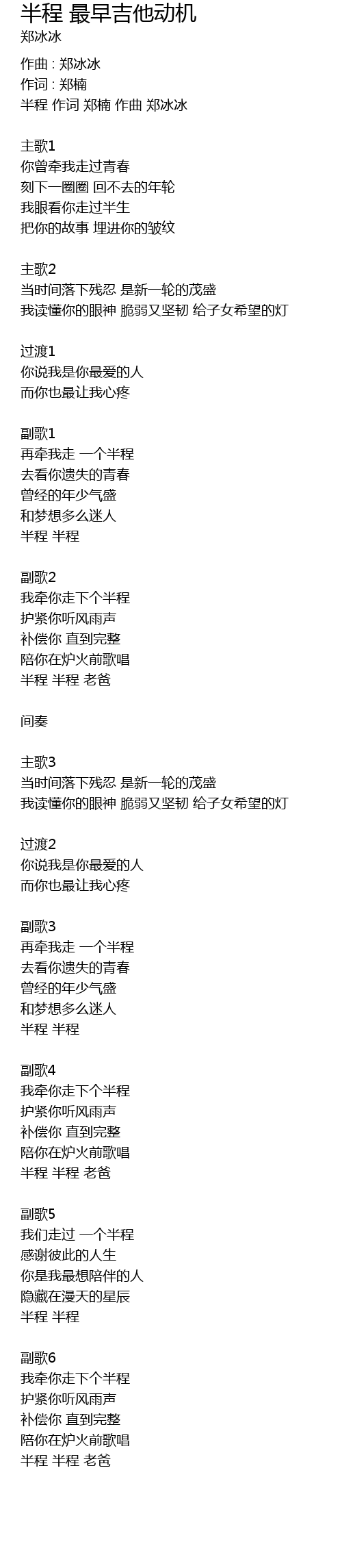 | 半程 作词 郑楠 作曲 郑冰冰 | |