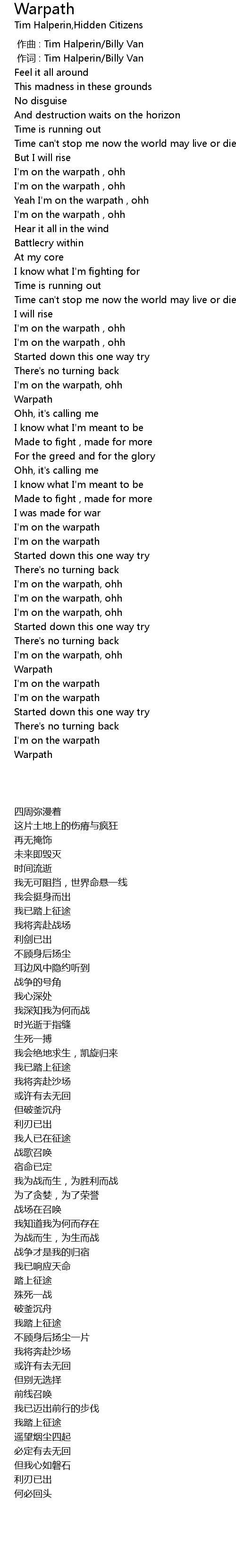 | [00:47.50] | Yeah I' m on the warpath , ohh |
