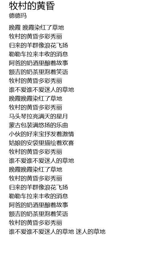 | [01:49.36] | 牧村的黄昏多彩秀丽 |