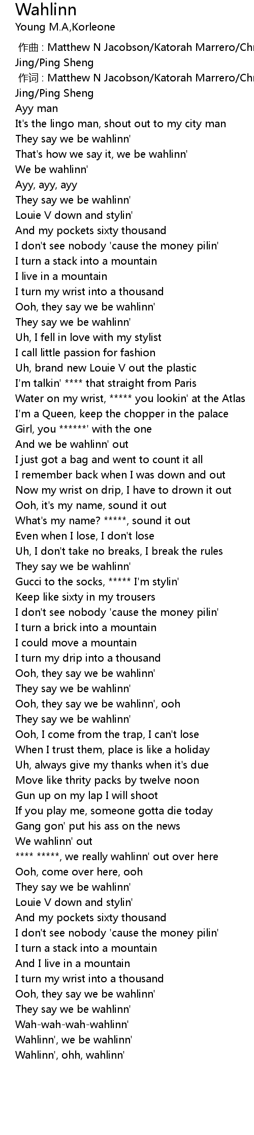 | [03:20.66] | Wahlinn', we be wahlinn' |