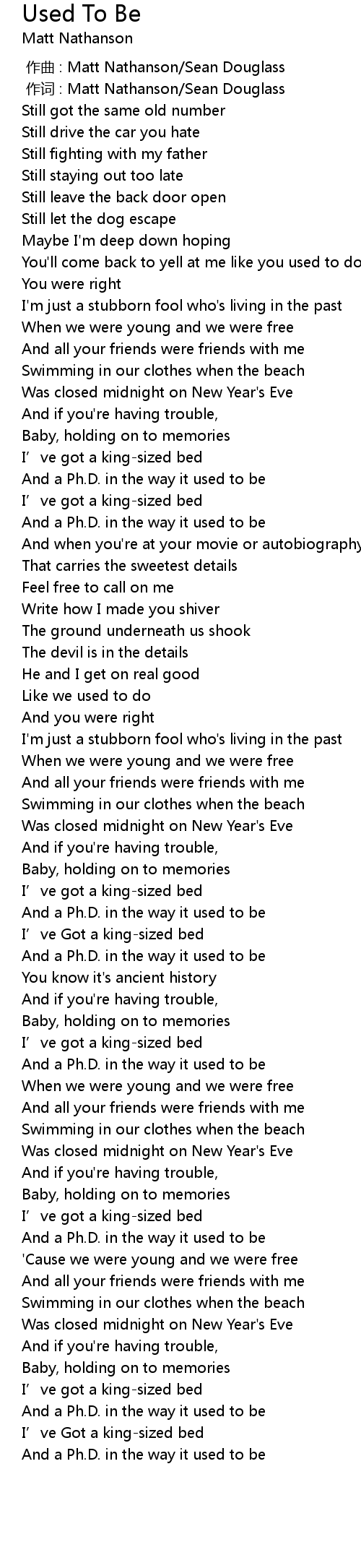 | Song | Used To Be |