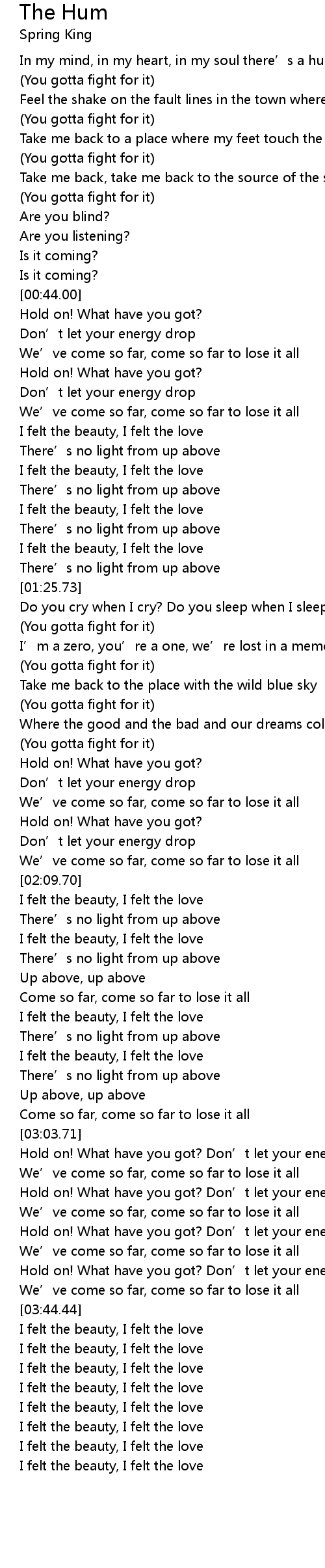 | [01:44.44] | (You gotta fight for it) |