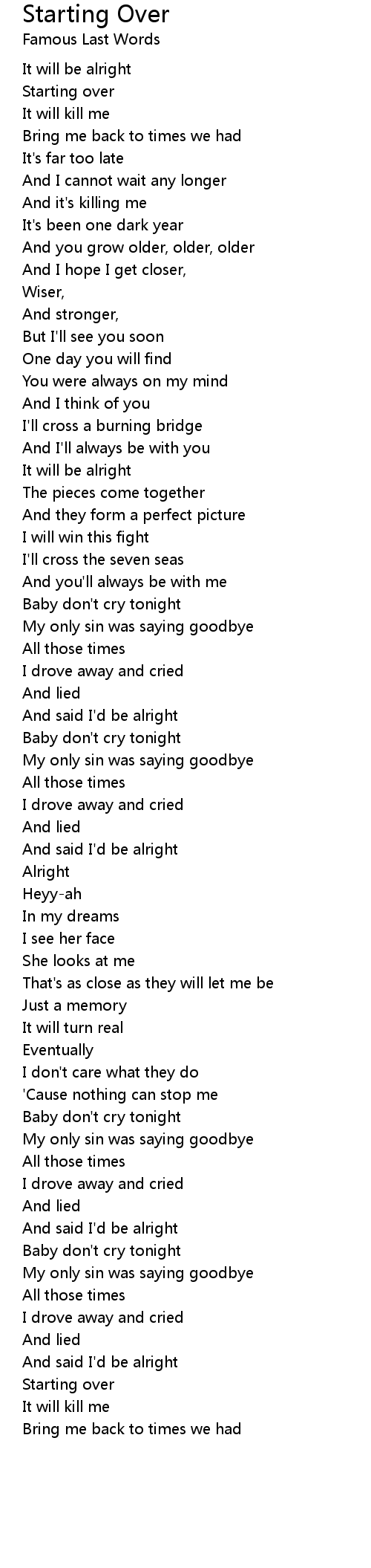 Starting Over Lyrics