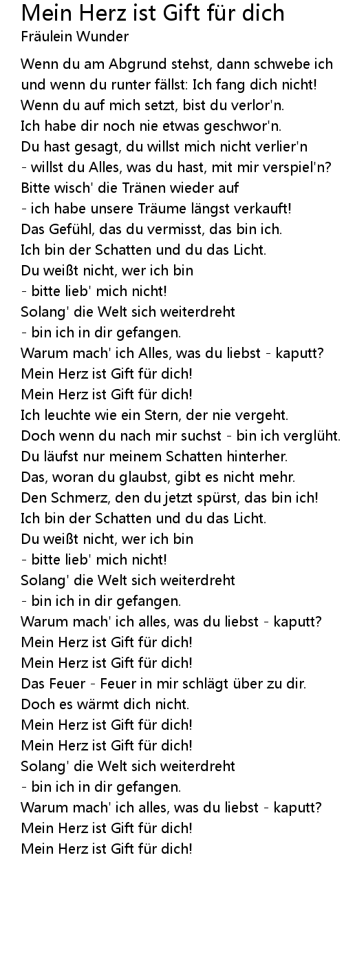 | Doch wenn du nach mir suchst - bin ich verglüht. | |