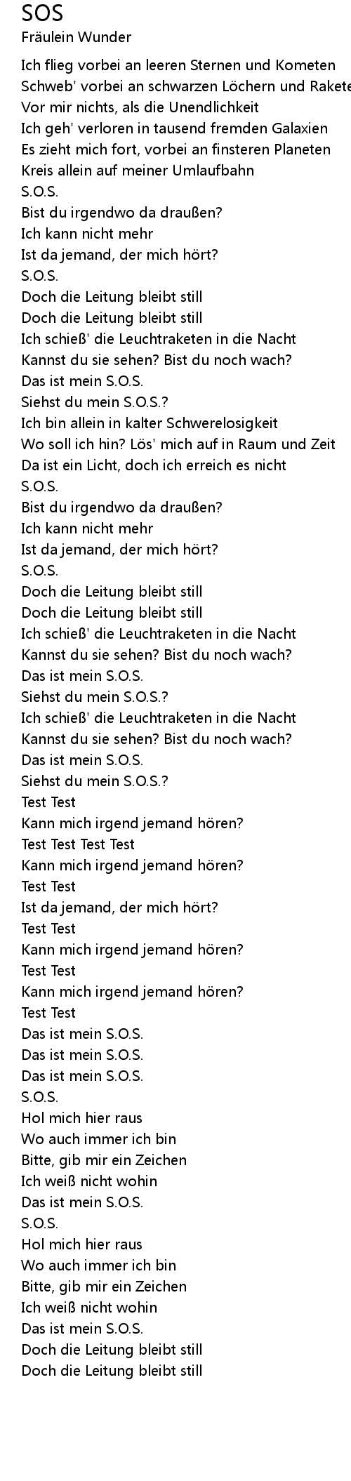 | Siehst du mein S. O. S.? | |