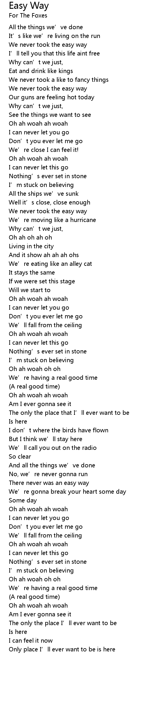 | Song | Easy Way |