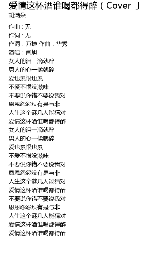 | Song | 爱情这杯酒谁喝都得醉(Cover 丁酉酉) |