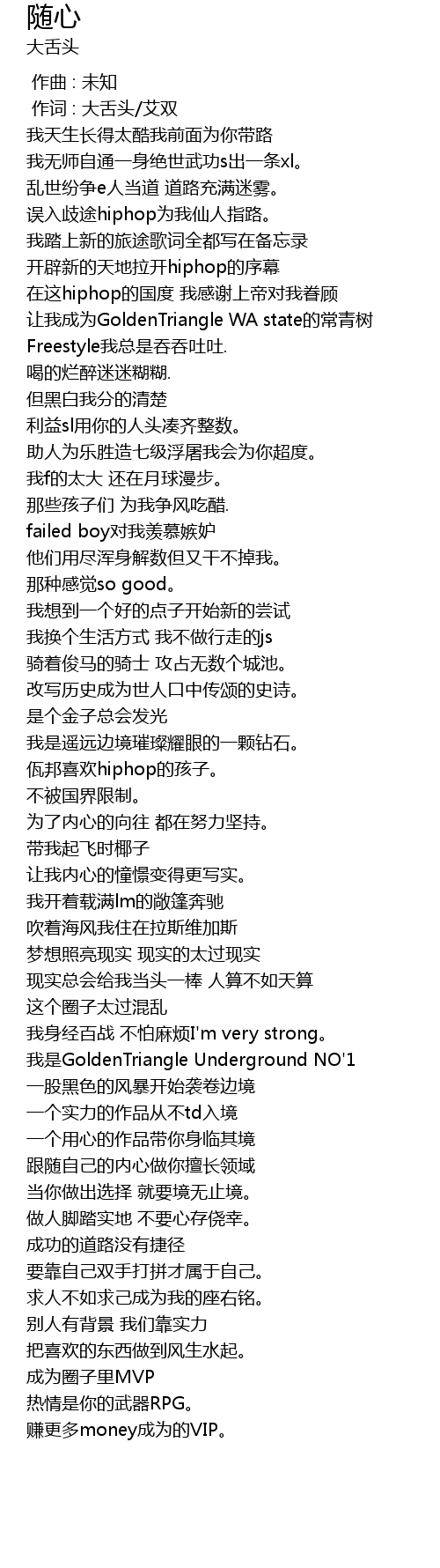 | [02:01.95] | 我是GoldenTriangle Underground NO'1 |