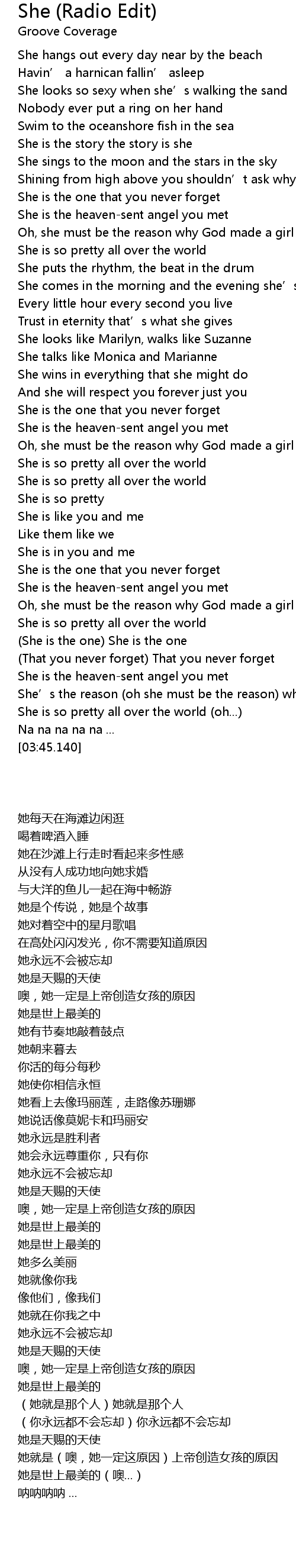 | [02:54.370] | (She is the one) She is the one |