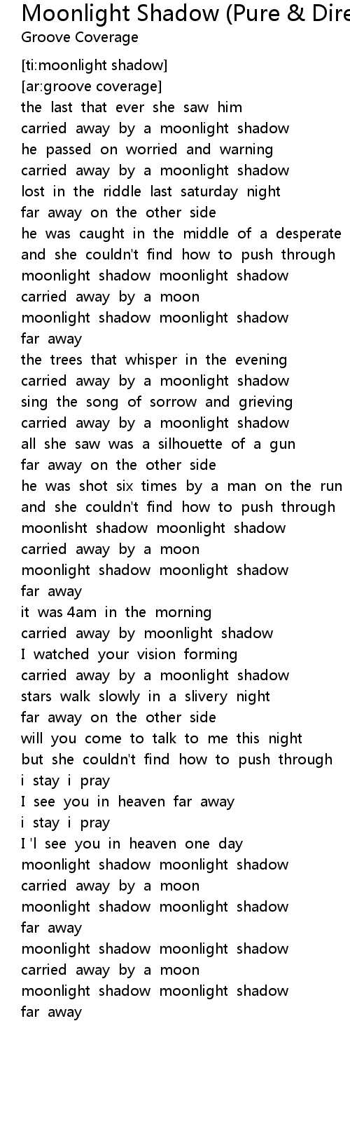 Moonlight Shadow (Pure & Direct Version) Lyrics
