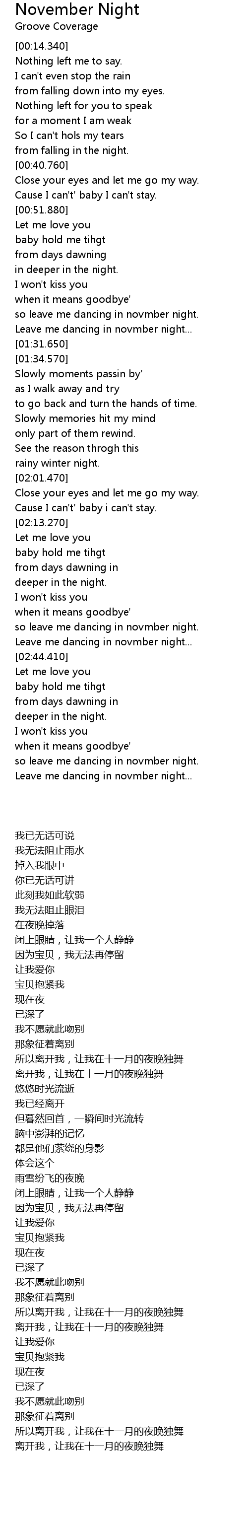 [02:39.510] Leave me dancing in novmber night...