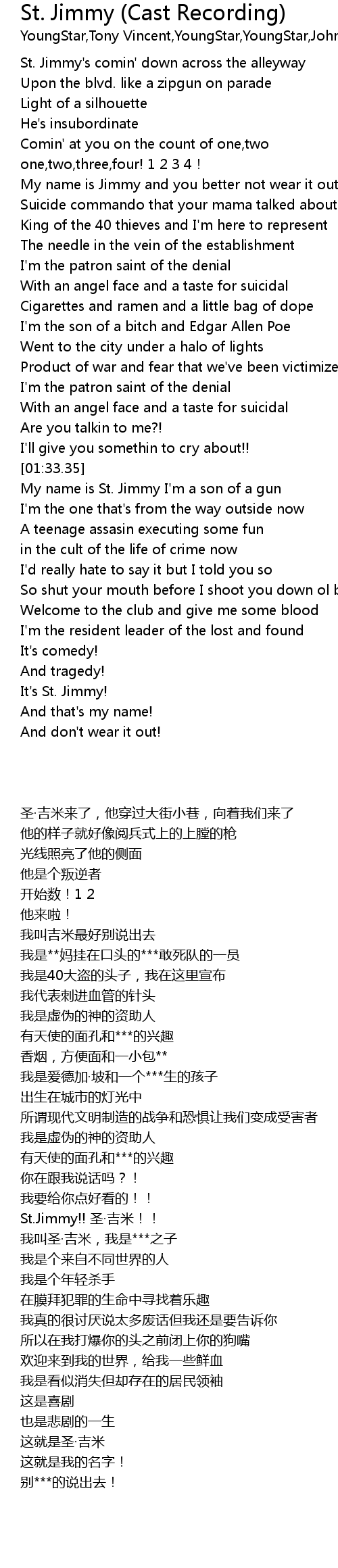 | [01:57.50] | My name is St. Jimmy I' m a son of a gun |