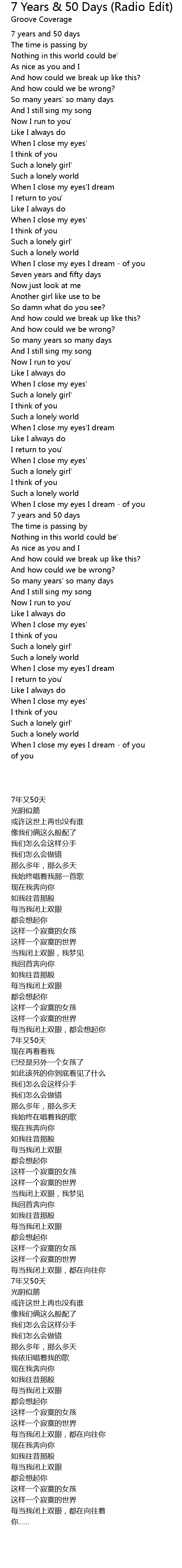 7 Years & 50 Days (Radio Edit) Lyrics
