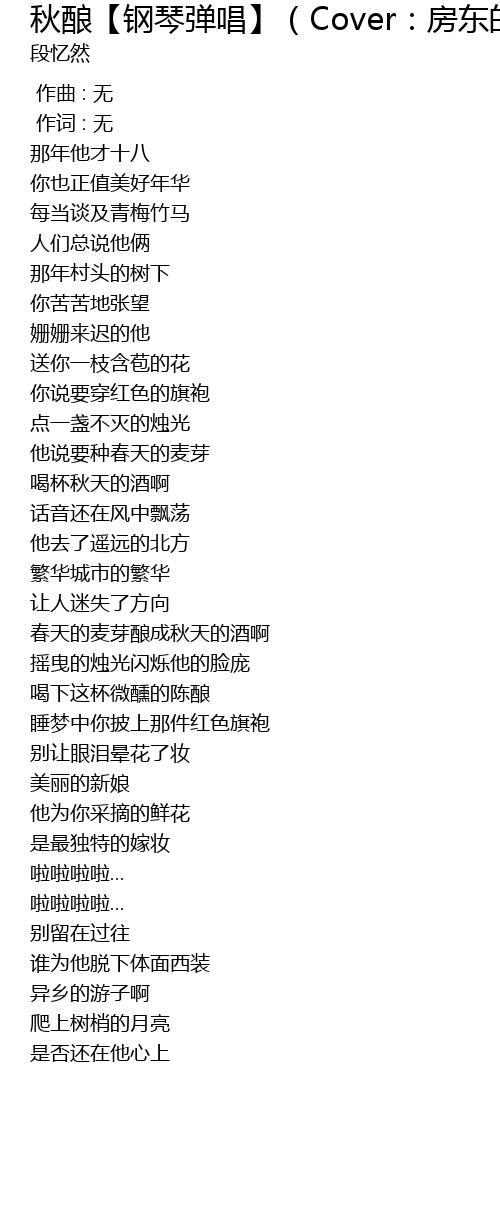 | [01:34.70] | chun tian de mai ya niang cheng qiu tian de jiu a |