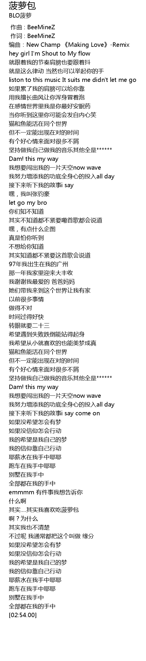 | [00:10.00] | 编曲:New Champ 《Making Love》-Remix |