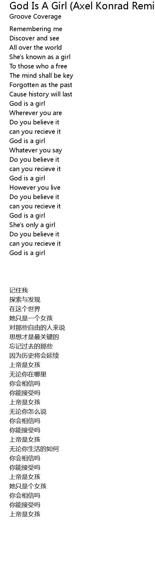 | Song | God Is A Girl (Axel Konrad Remix) |