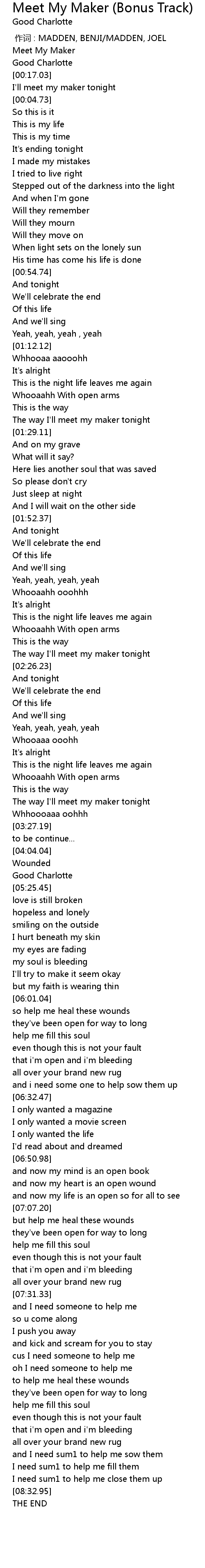 | [02:22.33] | The way I' ll meet my maker tonight |