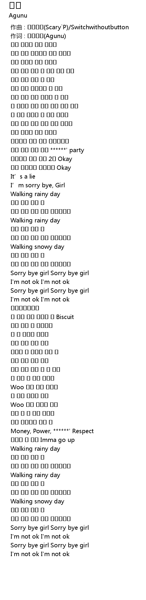 | [00:01.000] | 作词 : 에이건누(Agunu) |
