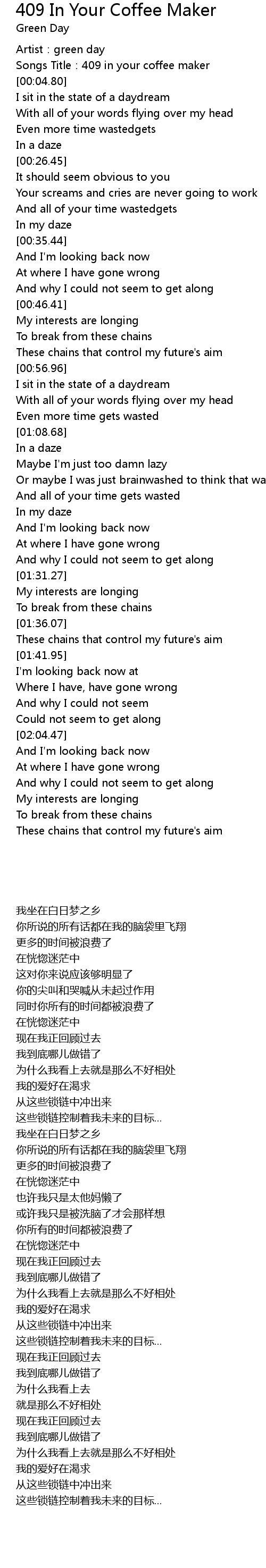 | [00:02.00] | Songs Title:409 in your coffee maker |