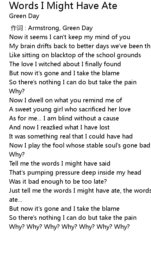 | [01:55.216] | Just tell me the words I might have ate, the words I might have ate... |