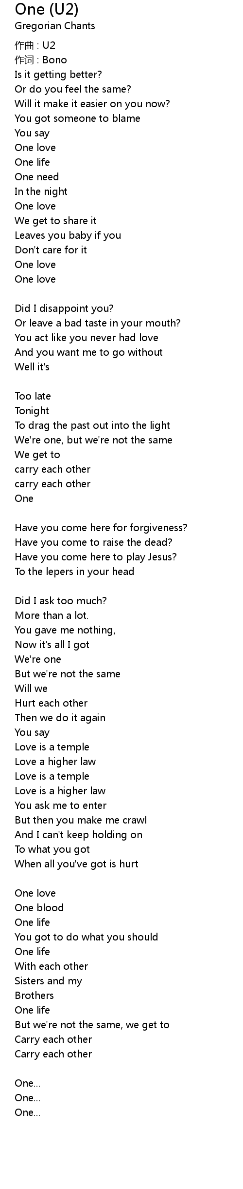 | 作词 : Bono | |
