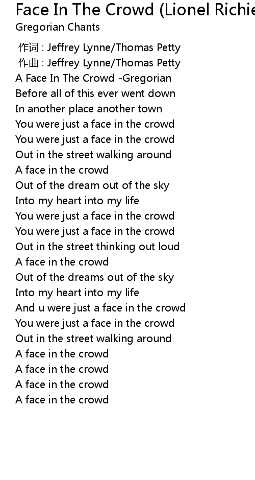 | [00:01.40] | A Face In The Crowd Gregorian |