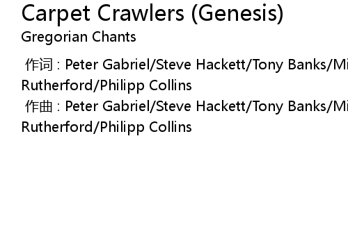 | [00:00.000] | zuo ci : Peter Gabriel Steve Hackett Tony Banks Mike Rutherford Philipp Collins |