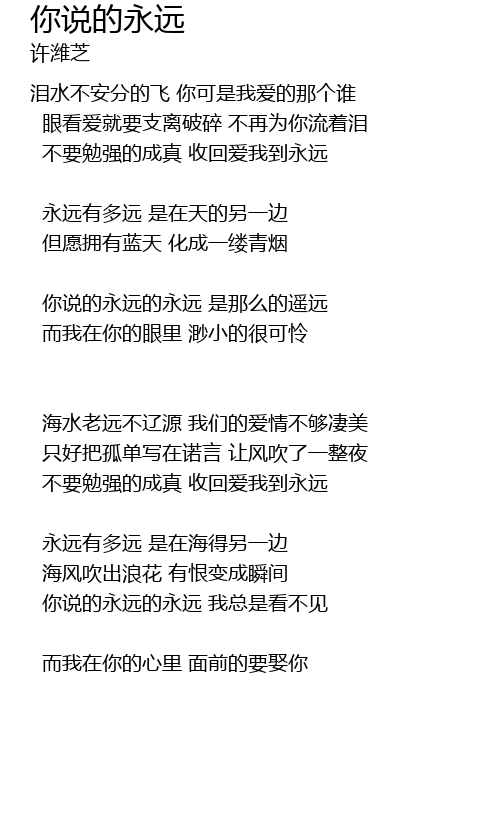 | ni shuo de yong yuan de yong yuan wo zong shi kan bu jian | |