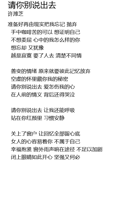 | qǐng nǐ bié shuō chū qù ràng wǒ hái néng hū xī | |
