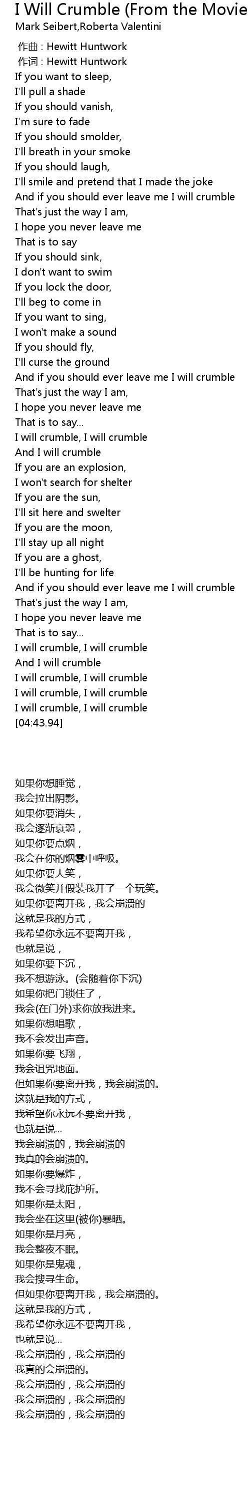| [04:21.69] | I will crumble, I will crumble |
