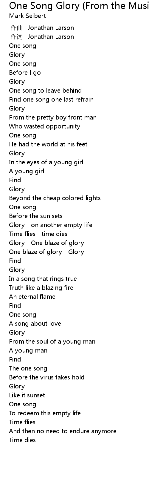 | [01:30.61] | One blaze of glory - Glory |
