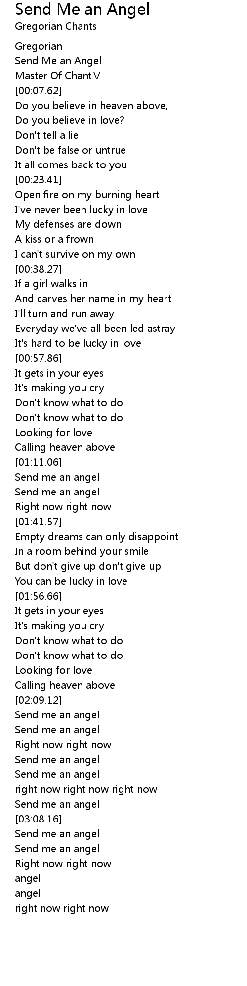 | [03:11.11] | Send me an angel |
