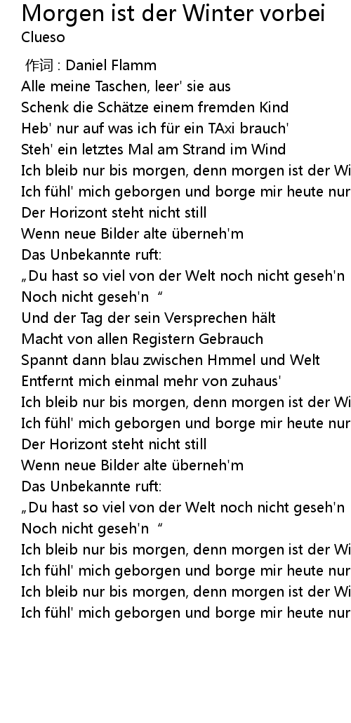 | Song | Morgen ist der Winter vorbei |