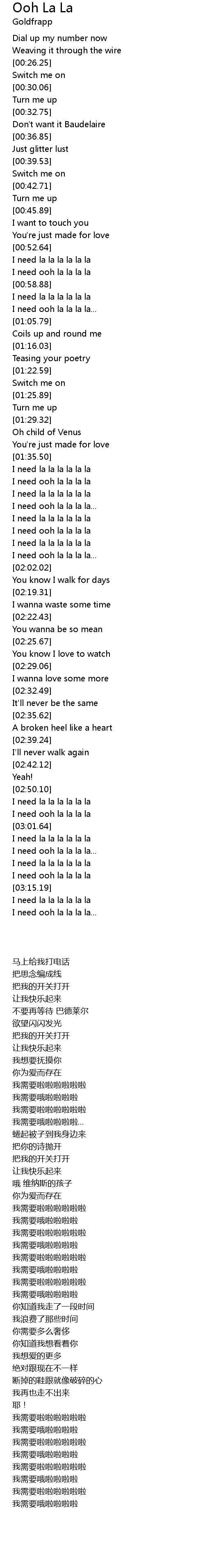I need ooh la la la la |