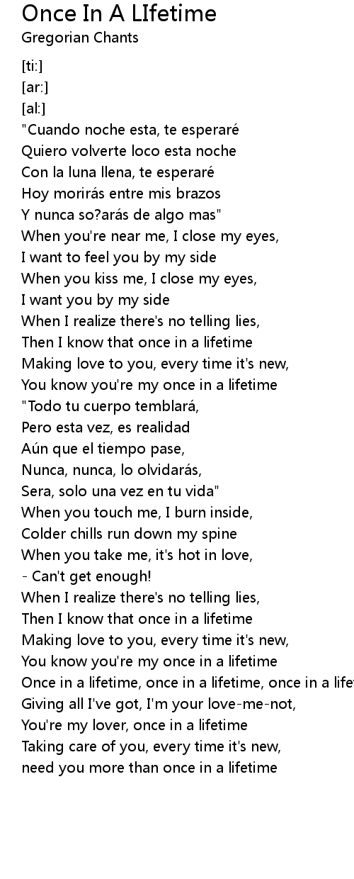 | [02:44.68] | Once in a lifetime, once in a lifetime, once in a lifetime |