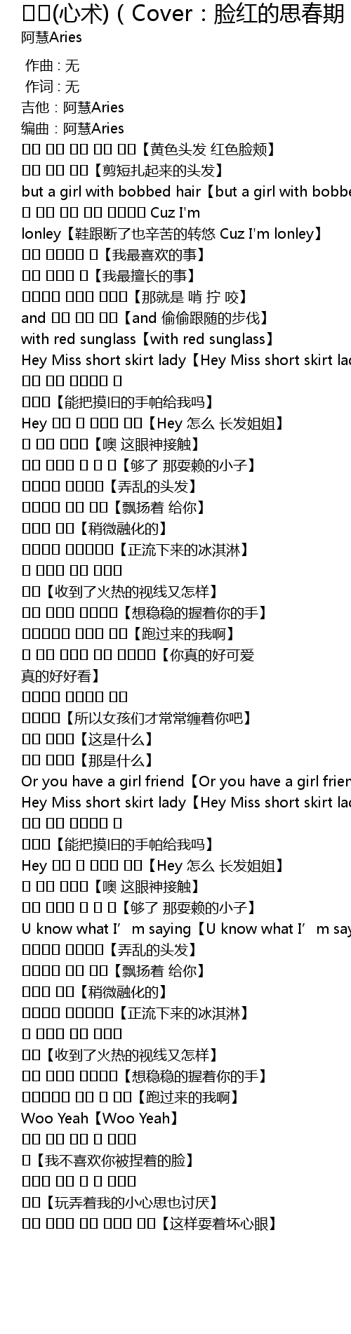 | [01:25.500] | Hey Miss short skirt lady Hey Miss short skirt lady |